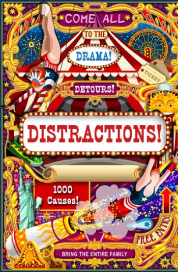 As distrações ocorrem de muitas maneiras diferentes. Às vezes, são distrações deliberadas, para que você não fique tão focado em todas as coisas que acontecem na sua vida. Às vezes, as distrações parecem vir de fora, incluindo os dramas de outras pessoas, o drama mundial, o drama ambiental, seja lá o que for.
