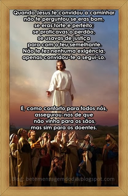 Quando Jesus te convidou a caminhar não te perguntou se eras bom, se eras forte e perfeito; se praticavas o perdão, se usavas de justiça para com o teu semelhante.