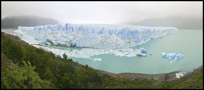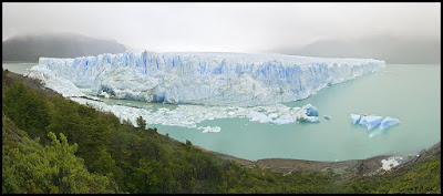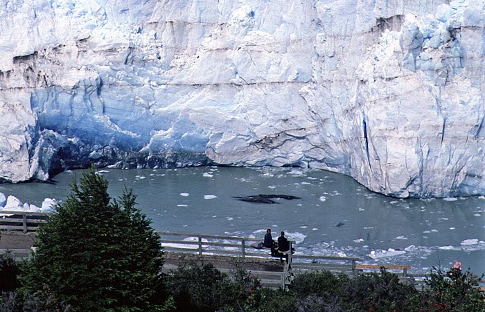 "Para quem visita o glaciar o êxtase é ficar horas a fio diante daquela massa gelada tentando descobrir onde cairá o próximo bloco. O enorme estrondo provocado pelo impacto do gelo com a água, em contraste com o silêncio que reina no local, faz o coração bater mais forte. Mas o gelo é perigoso e deve ser admirado de uma distância segura. Até 1988 já haviam morrido 32 pessoas ali, vítimas de pedaços de gelo ou das ondas de quase 3 metros formadas pela queda. Hoje as passarelas protegem os visitantes e delimitam o perímetro. Este espetáculo ocorre todos os dias, em todas as horas e pode ser admirado tanto no verão como no inverno. Para quem visita o glaciar, sugiro levar abrigo para o frio e chuva pois a proximidade com a cordilheira do Andes faz com que o tempo mude com freqüência. Voce só poderá absorver toda a magia do glaciar se estiver abrigado."